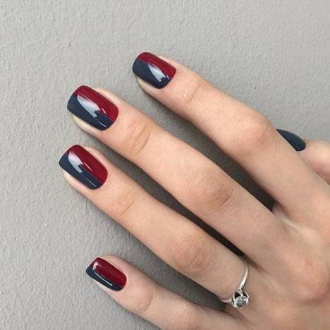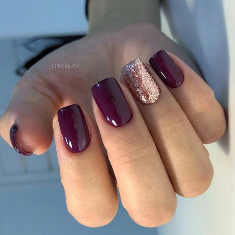 На коротких ногтях лучше всего будет смотреться маникюр с использование темных насыщенных оттенков, таких как: