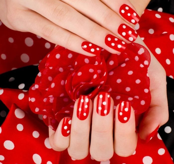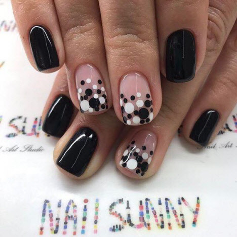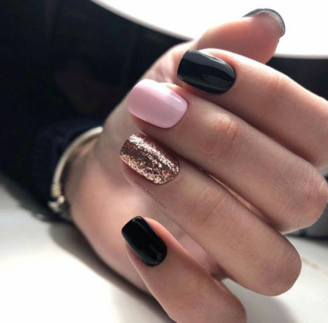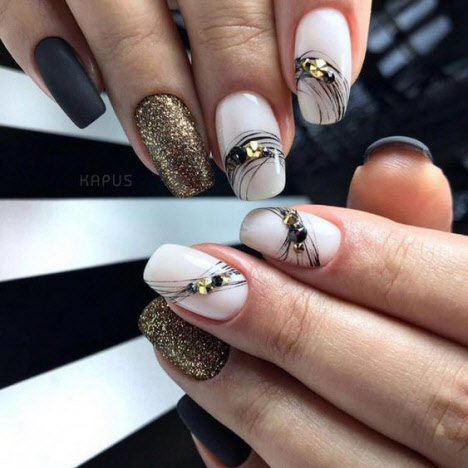 В этом году популярен будет маникюр в горошек. Покройте ногти розовым лаком и добавьте черные точки. Это милый и нежный вариант, который подойдет любой девушке. Не теряет своей популярности дизайн с золотым декором. Золото всегда смотрится шикарно.