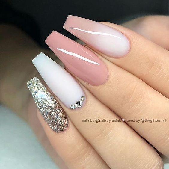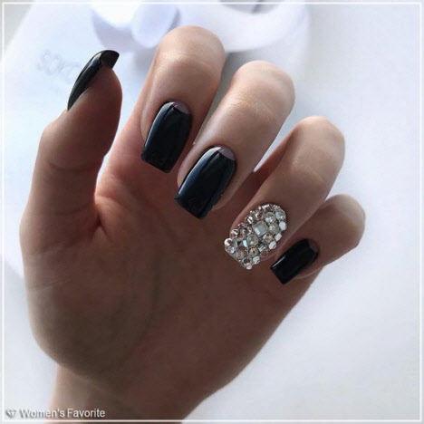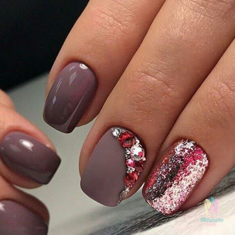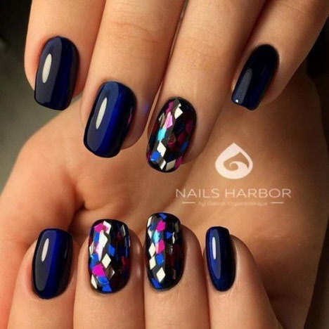 Сегодня применение блесток и страз довольно популярно среди девушек, которые хотят блистать и быть заметными. Данный стиль довольно милый и сочетается с любыми оттенками лаков. Блеск будет прекрасно смотреться и на пастельных тонах, и на ярких, смелых и на темных насыщенных. Их можно наносить как на каждый ноготь, так и на какой-то один, обычно это безымянный палец.