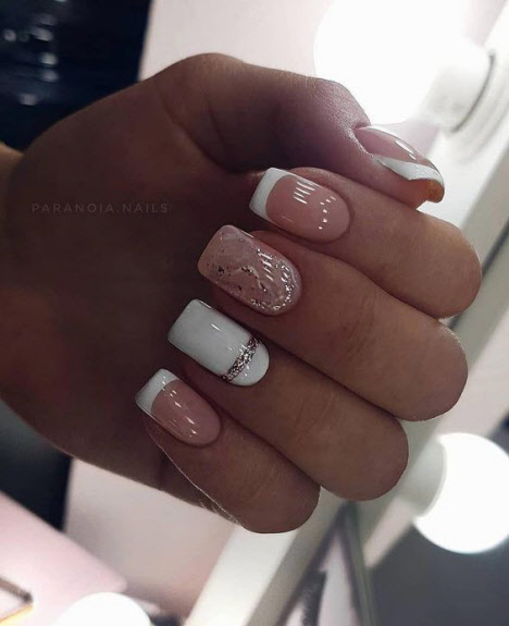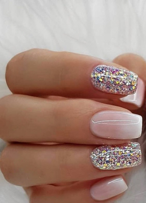 Модный маникюр с блестками на квадратные ногти 2020 может быть женственным и романтичным, может быть лаконичным и в деловом стиле, а может быть дерзким и ярким. Все лишь зависит от ваших предпочтений и настроения.