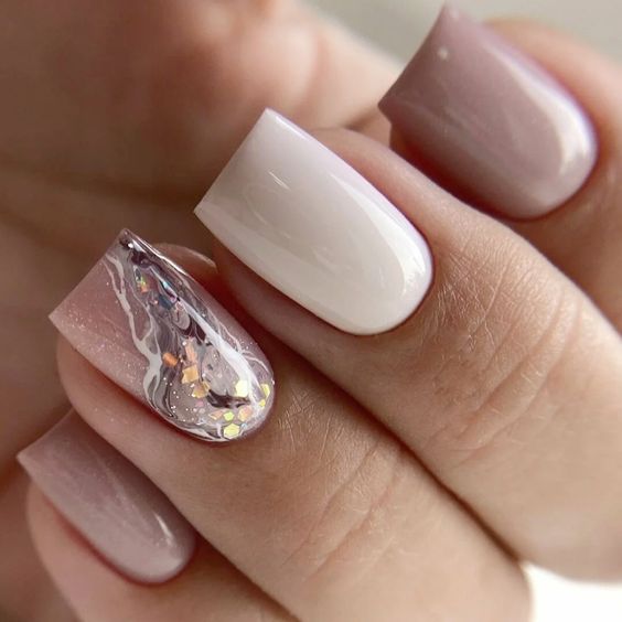 Конечно, можно сделать нюд, чтобы точно не прогадать. Но если вы хотите сделать акцент, то сделайте его на 1-2 пальцах, тогда ногти точно будут выглядеть аккуратно и не броско.