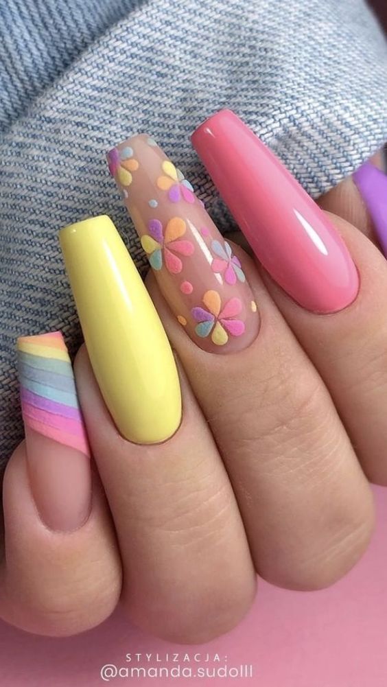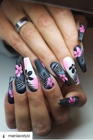 Есть такие рисунки в маникюре, которые точно будут актуальны всегда. В данном случае речь идет о цветочном принте, который считается трендом №1 летнего сезона. Интересно, что в зависимости от выбранного варианта маникюр будет производить совершенно разное впечатление. Тонкие, изящные веточки с бутонами будут характеризовать вас как человека скромного, но в то же время романтичного. Крупные, яркие цветы при тщательной прорисовке всех деталей делают картину особенно яркой. Тропические принты выдают планы на лето, привлекая тем самым еще больше внимания. Не ограничивайте себя в выборе, а экспериментируйте как можно раньше. Только так можно прийти к собственному чувству вкуса и стиля.