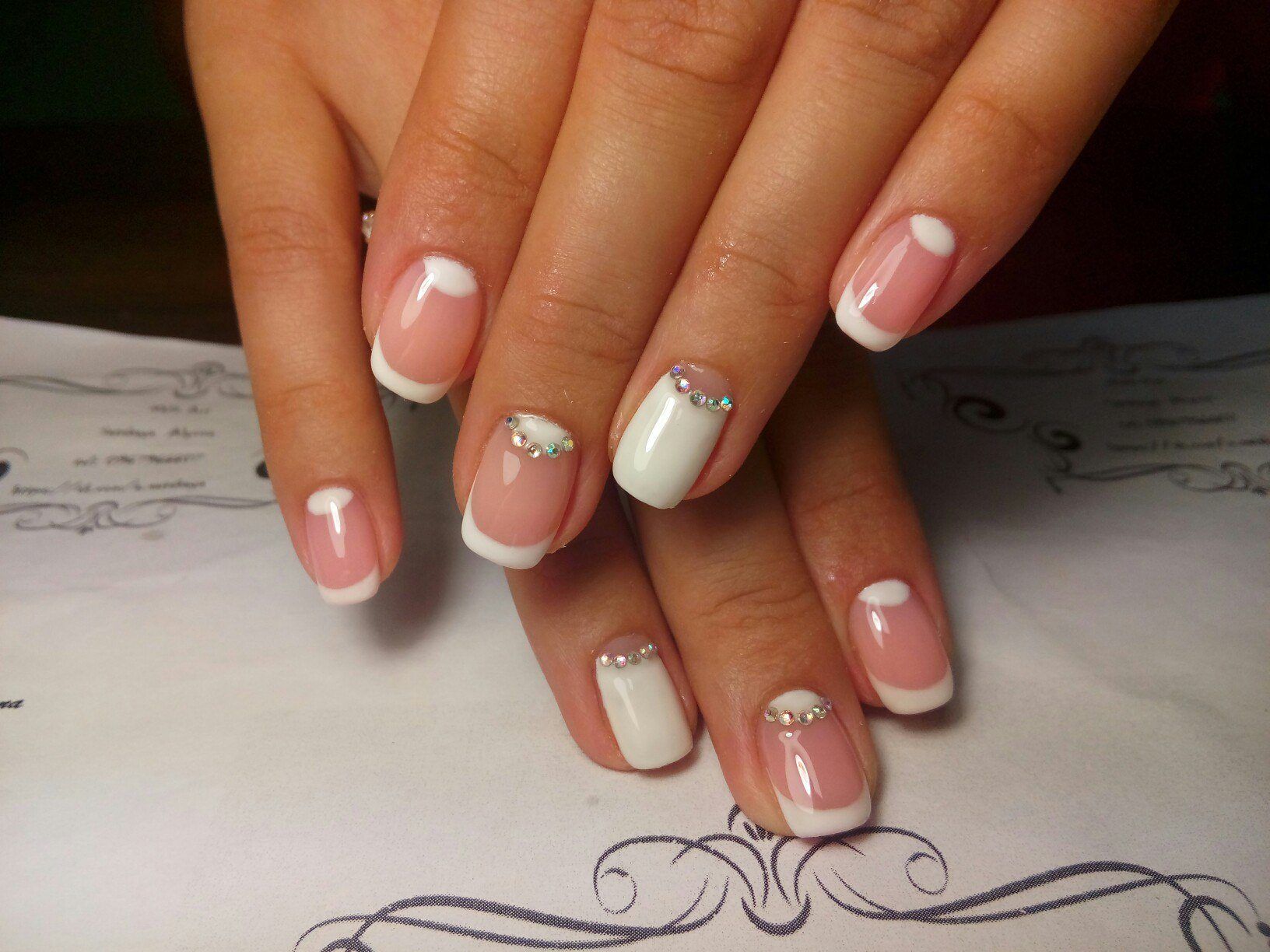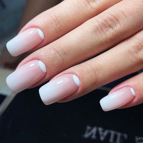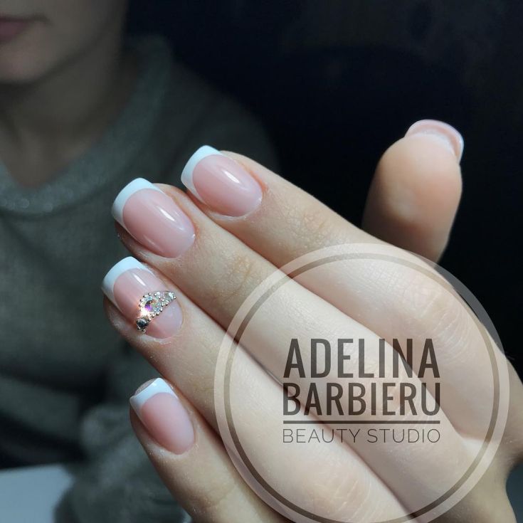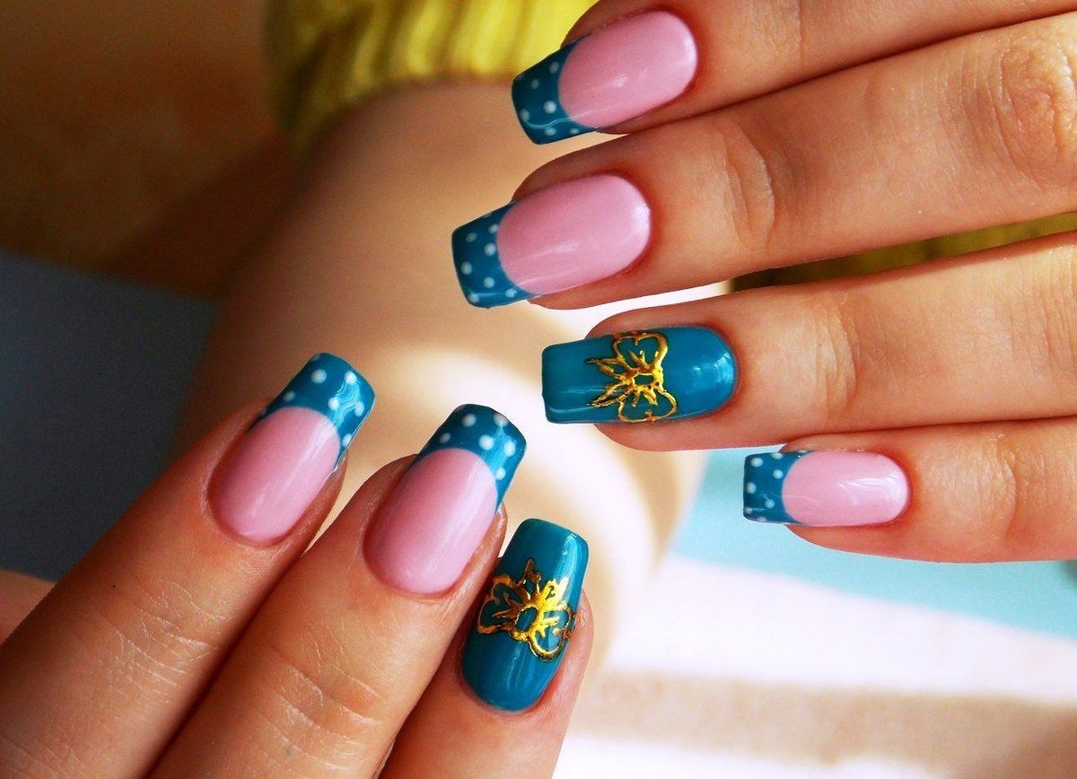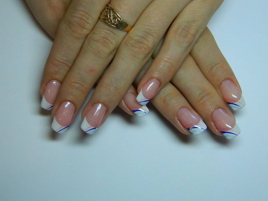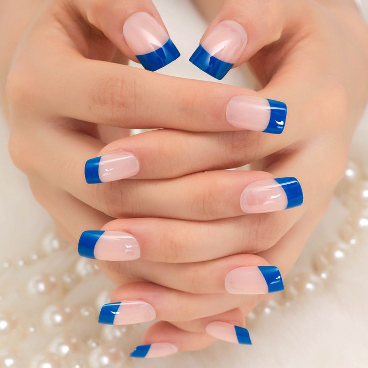 Стандартное цветовое оформление френча — это розовая база и белые кончики ногтей. Но для тех, кто хочет попробовать что-то более современное, стоит рассмотреть варианты в других оттенках — кончики вполне можно сделать голубыми, красными, чёрными, синими…
