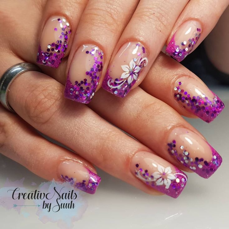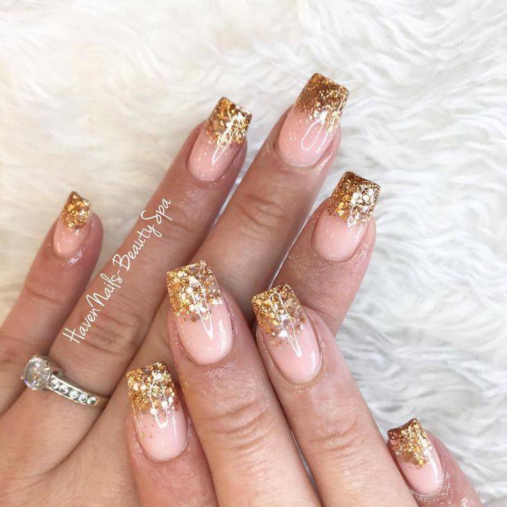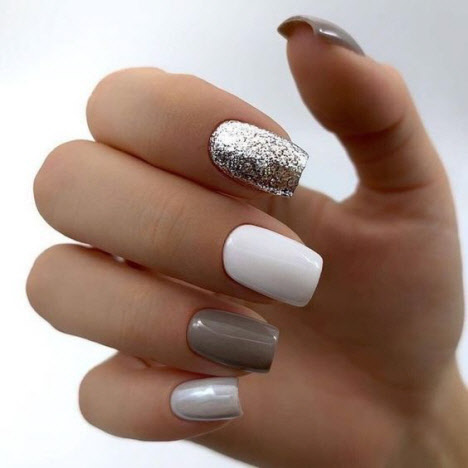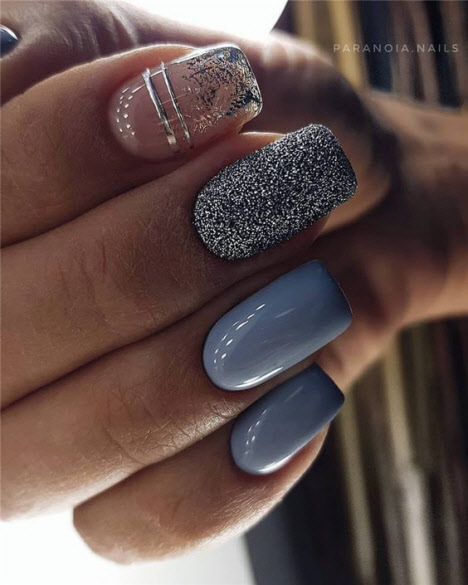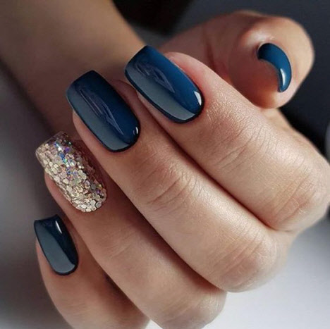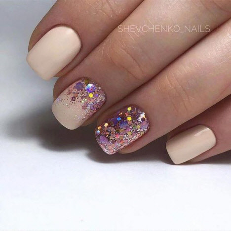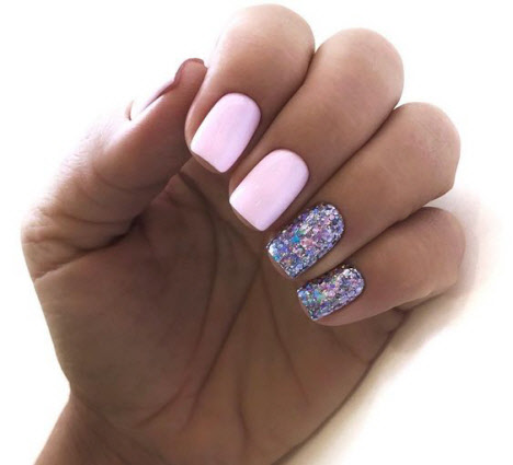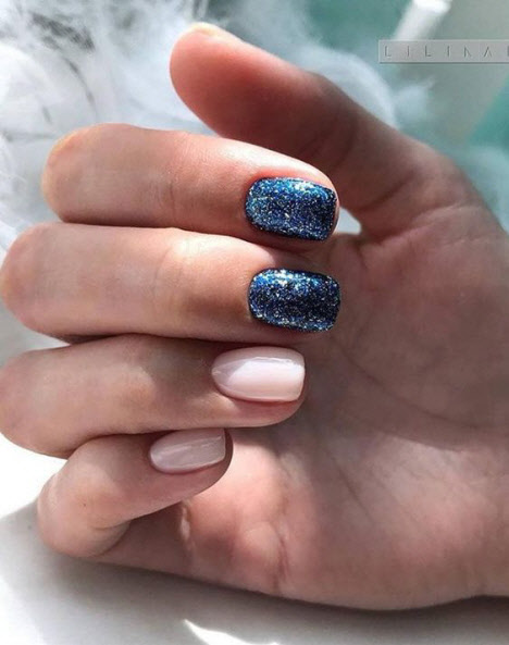 Сегодня маникюр с блестками — это уже давно не праздничный маникюр, а очень даже и повседневный. Существует много разных вариантов дизайна маникюра с блестками на квадратную форму ногтей и в светлых и в темных тонах.