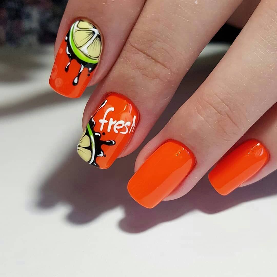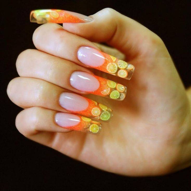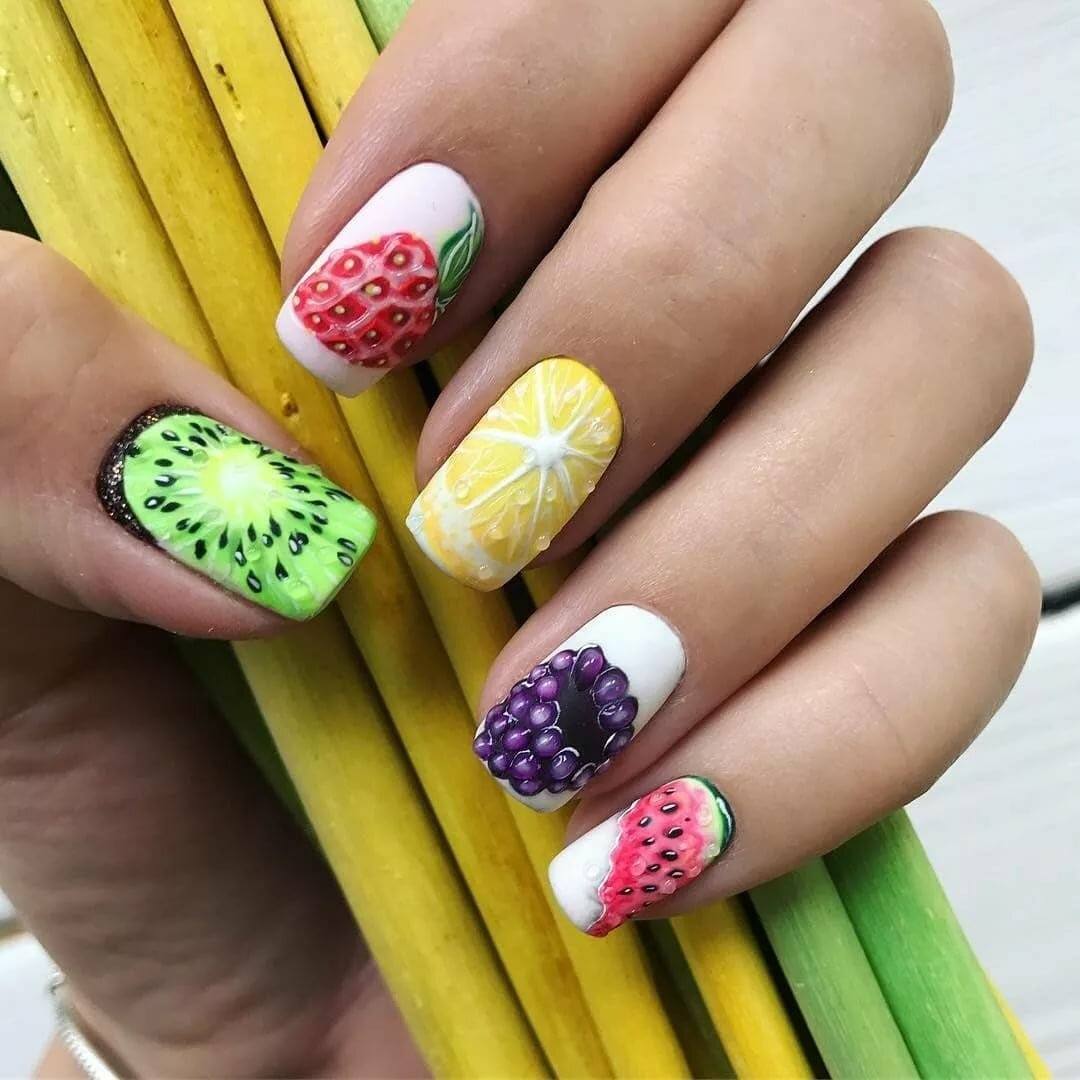 Маникюр на квадратные ногти: фруктовое безумие на лето