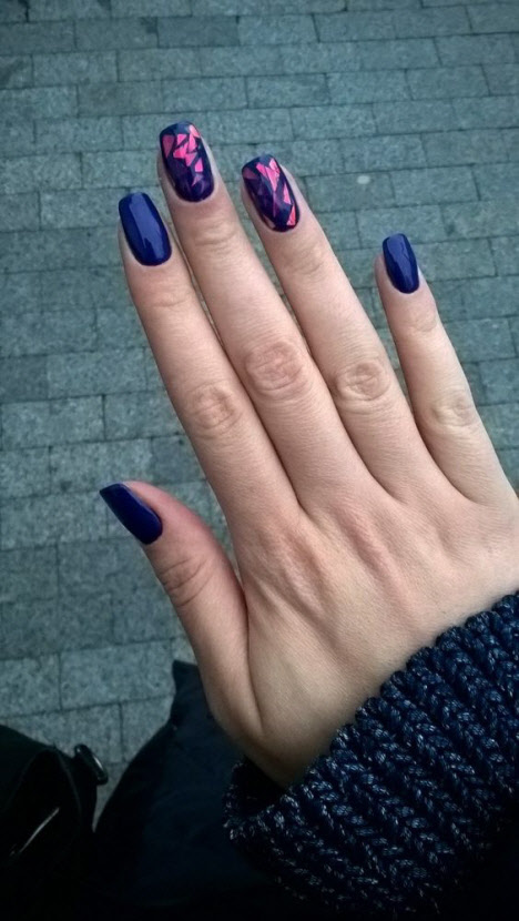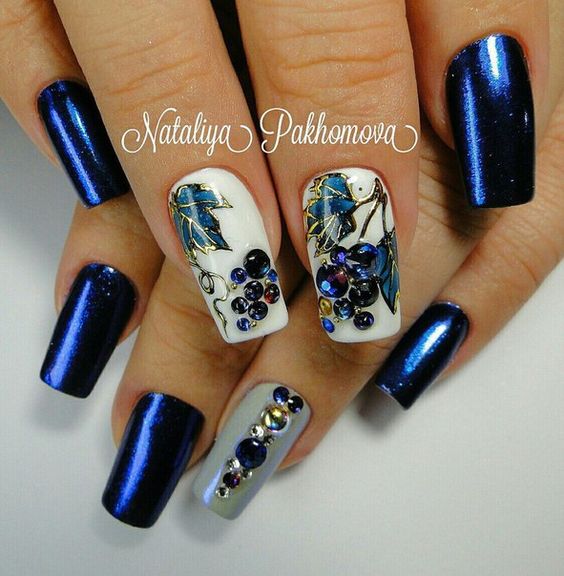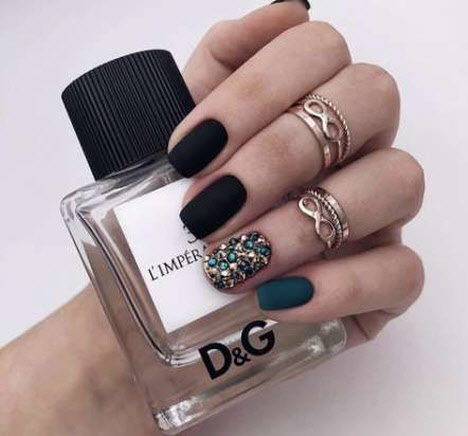 Темные лаки словно созданы для осенне-зимнего времени. Они насыщенные, глубокие, а если добавить к ним блеск страз, то получится в меру торжественно и празднично. Между собой темные оттенки не слишком хорошо сочетаются, так как могут «прятать» друг друга, зато с любыми яркими или светлыми лаками они будут создавать гармоничный союз.