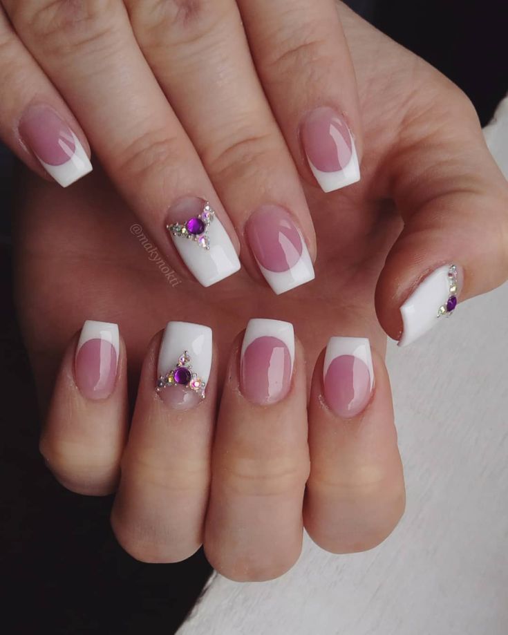 Для французского маникюра имеются привычные оттенки (белый и нюдовый тон). Но сегодня мода прогрессирует все быстрей и быстрей. Дизайн ногтей идет в ногу с модными тенденциями. Именно поэтому привычные оттенки французского маникюра сменились на разнообразные оттенки. К примеру, стиль твист подразумевает в себе не только разноцветие улыбки, но и яркие фоны. Для идеального дизайна французского маникюра используют различные виды декора: камни, трафареты, стразы, ленты, глиттер и пигменты с разнообразными эффектами. Для создания оригинального квадратного маникюра используют роспись в ручном исполнении. Дизайн делается в виде абстракции, узора или конкретного рисунка.