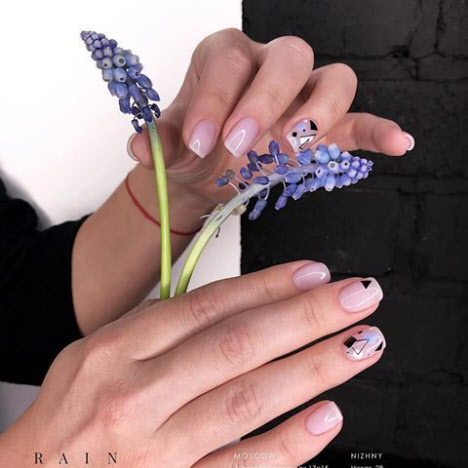 Мода наступающего сезона диктует необходимость нового подхода к геометрическому дизайну: отныне он должен быть минималистичен. Не стоит рисовать сложные многогранники сразу на всех ноготках, достаточно на одном изобразить треугольник или квадрат.