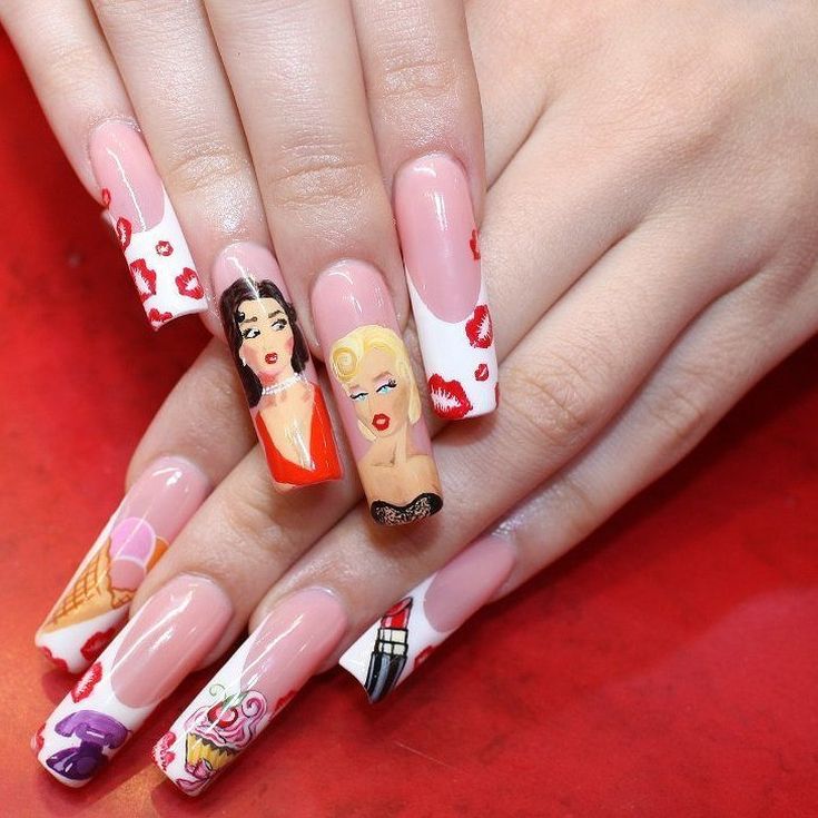 В новинки вошел маникюр с мультяшными героями. Пикачу, Том и Джерри, принцессы, Спанч Боб и Патрик — все это в тренде. Необычной идеей будет нанести на свои ногти Белоснежку и гномов.