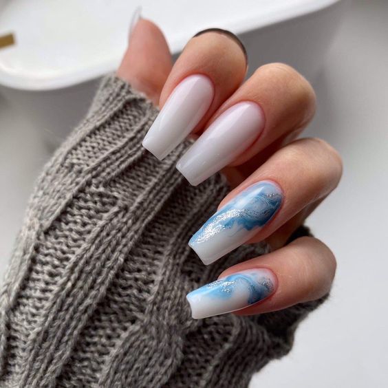 Камифубуки можно наносить лишь у основания ноготка или на кончики, как френч, или же на всю поверхность ногтевой пластины. Какой бы вы вариант не выбрали, каждый из них смотрится очень красиво и в тоже время стильно, особенно на квадратной форме ногтей.