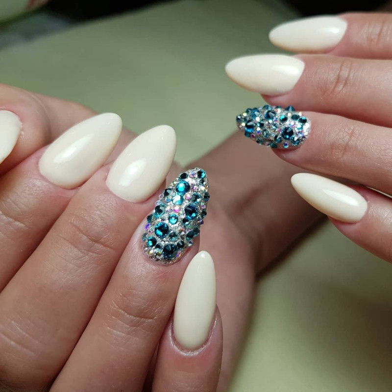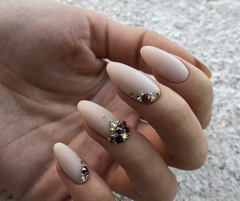 Один из самых распространенных вариантов украшения. На «миндале» все типы сверкающих украшений выглядят особенно выразительно.