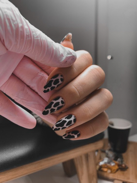 Животные принты давно актуальны не только в одежде. Имитация змеиной кожи и шкуры тигра уже в прошлом. Новый тренд - коровий маникюр