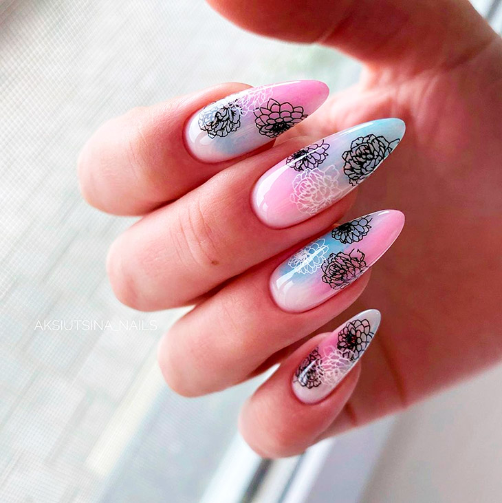 Естественная форма и приемлемая длина позволит украсить миндалевидные ногти французским и лунным маникюром, сделать градиент, эффект дымки, креативные ногти с металлическим покрытием, а также попробовать мраморный, 3D маникюр, загадочный кошачий глаз и т.д.