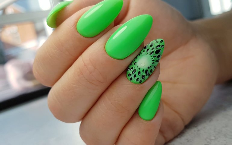 Броский, яркий маникюр на миндальных ногтях – элегантная роскошь 2023