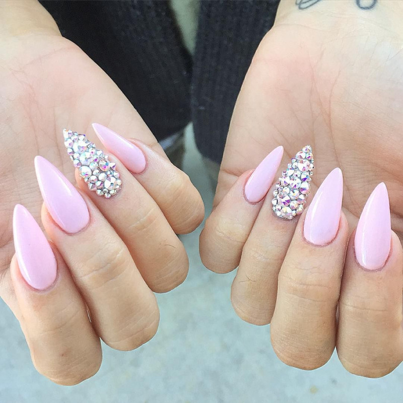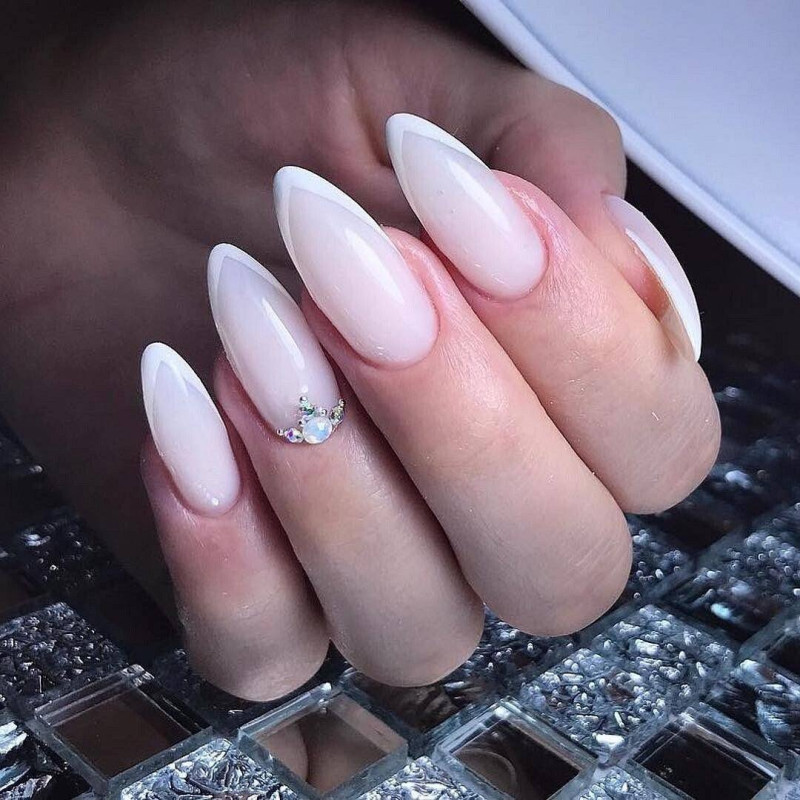 Заостренные ногти привлекают внимание уже одной своей необычной формой, поэтому дизайн должен быть умеренным. Лучший выбор в таком случае – простота