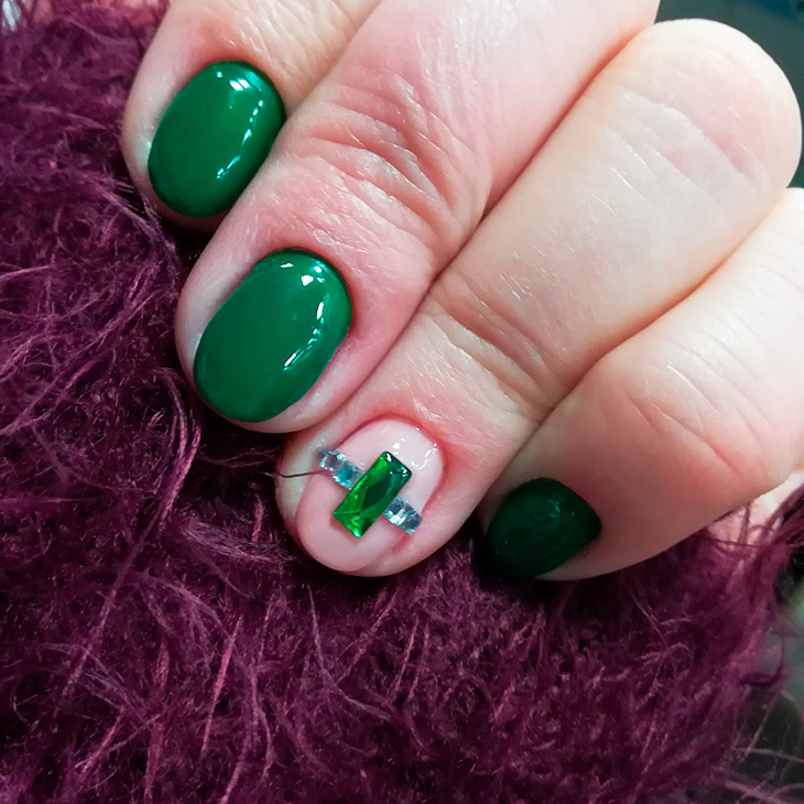 При выборе насыщенных лаков не рекомендуются блестящие детали, так как палитра, итак, бросается в глаза. В противном случае есть риск превратить эпатажный, смелый дизайн в безвкусицу.