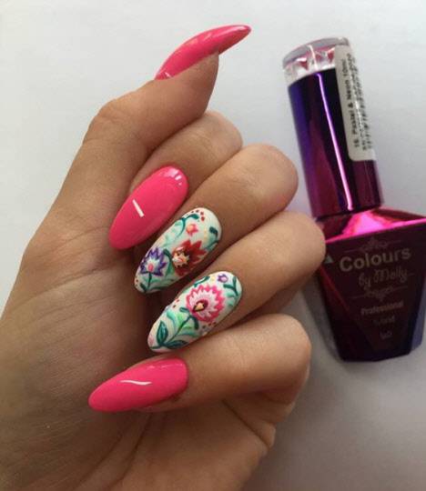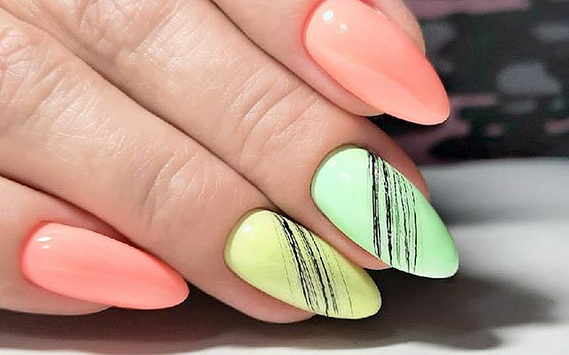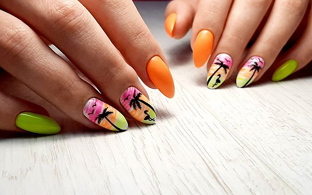 В отличие от других форм ногтей, миндалевидная придает даже неоновым, кислотным краскам благородную элегантность. Можно не опасаться переборщить с декором, выбором броских цветов или крупными, экстравагантными деталями. Особенно подходит такой стиль молодым, активным девушкам или для беззаботного отдыха на море, различных туров.