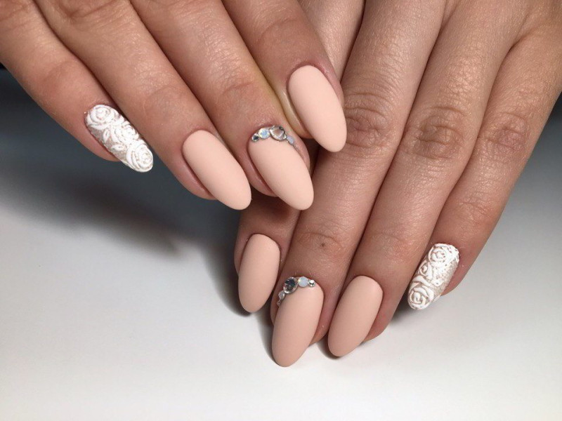 К тому же, для создания более яркого эффекта всегда можно выложить стразами лунку или же тематический дизайн. Прекрасным выбором будет кружевная роспись, а также нежный цветочный рисунок. В целом, для свадьбы подходит невероятно большое количество вариантов оформления. Поэтому не торопитесь и выбирайте тот, который придется по душе именно вам.