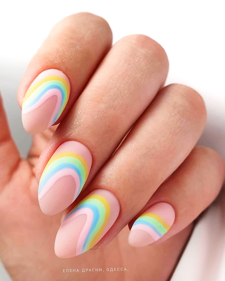 - все цвета радуги в градиенте по ногтю или по отдельным пальчикам;