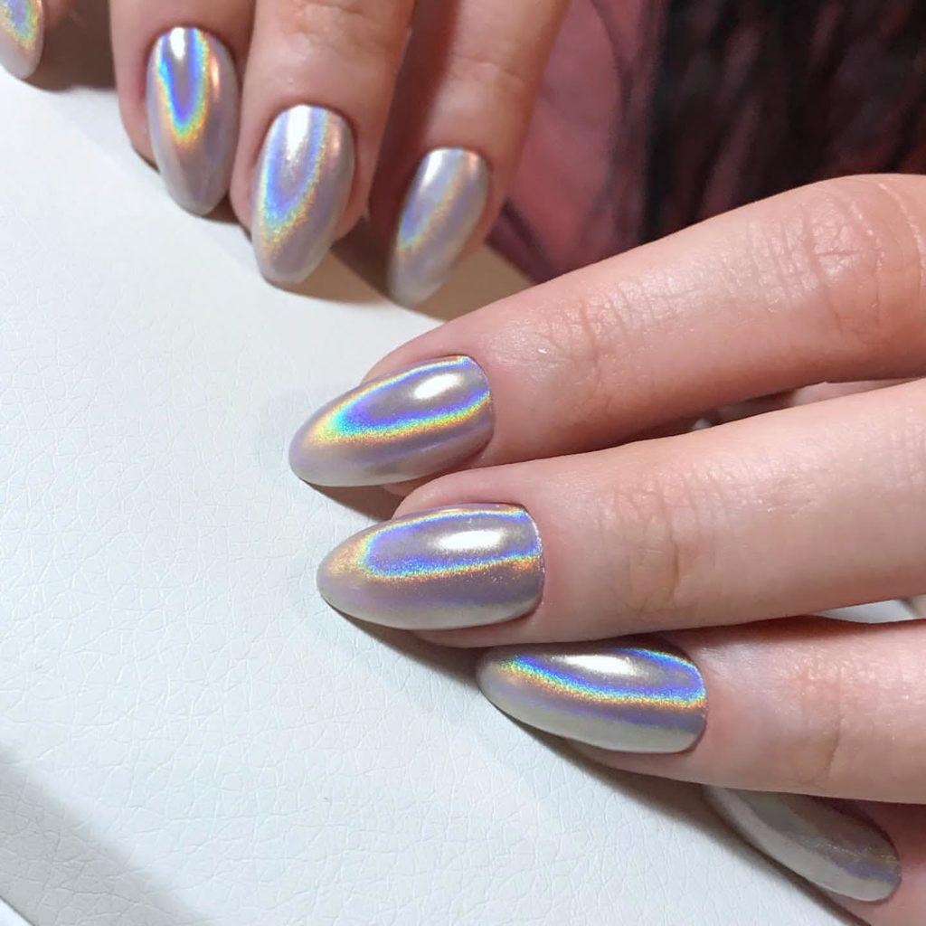 Естественная форма и приемлемая длина позволит украсить миндалевидные ногти французским и лунным маникюром, сделать градиент, эффект дымки, креативные ногти с металлическим покрытием, а также попробовать мраморный, 3D маникюр, загадочный кошачий глаз и т.д.