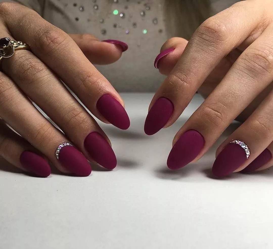 Иногда для роскошного внешнего вида достаточно всего лишь однотонного покрытия, можно сделать глянцевые или матовые ногти на миндаль.