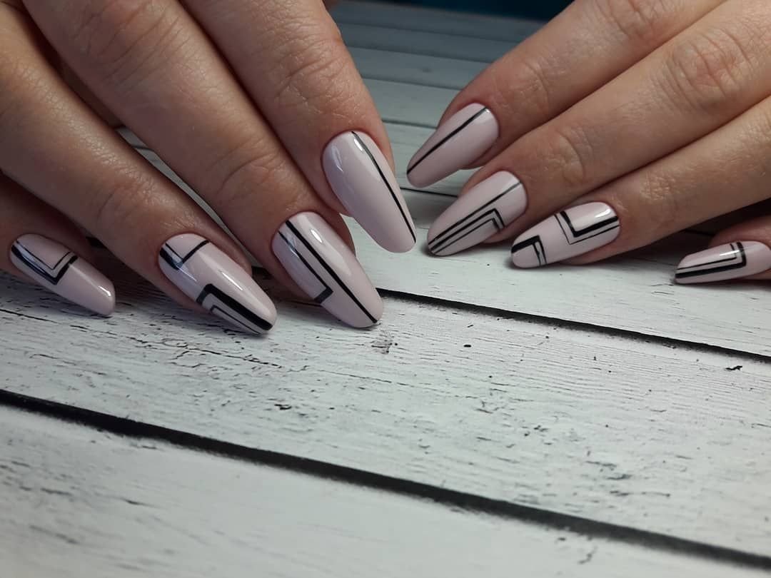 Черный- несомненный фаворит в создании маникюра 2019 миндалевидной формы. Его можно использовать как базу или сделать акцент на светлом фоне.