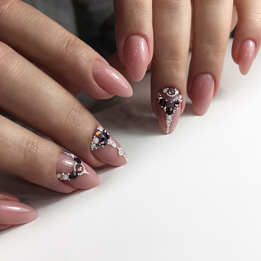 Один из самых распространенных вариантов украшения. На «миндале» все типы сверкающих украшений выглядят особенно выразительно.