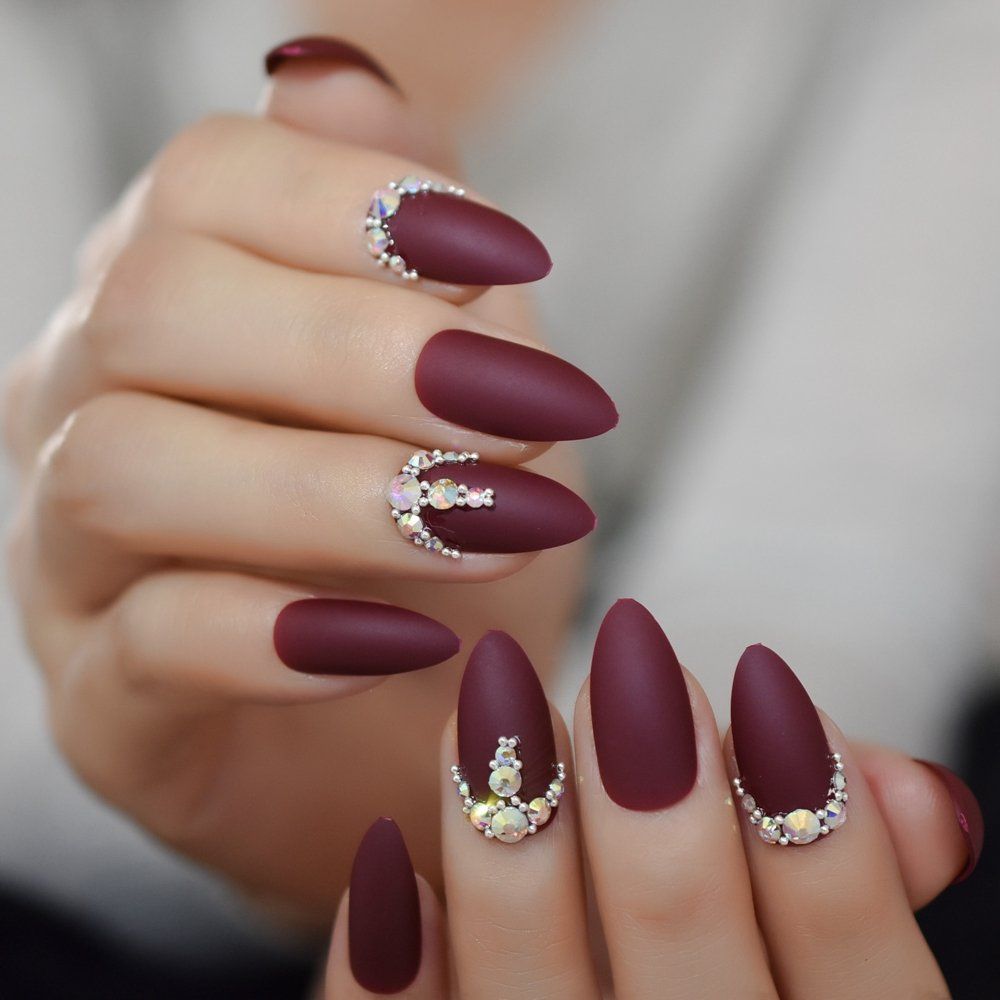 Заостренные ногти привлекают внимание уже одной своей необычной формой, поэтому дизайн должен быть умеренным. Лучший выбор в таком случае – простота