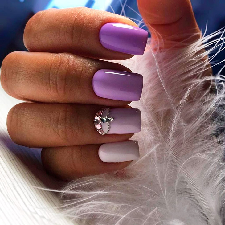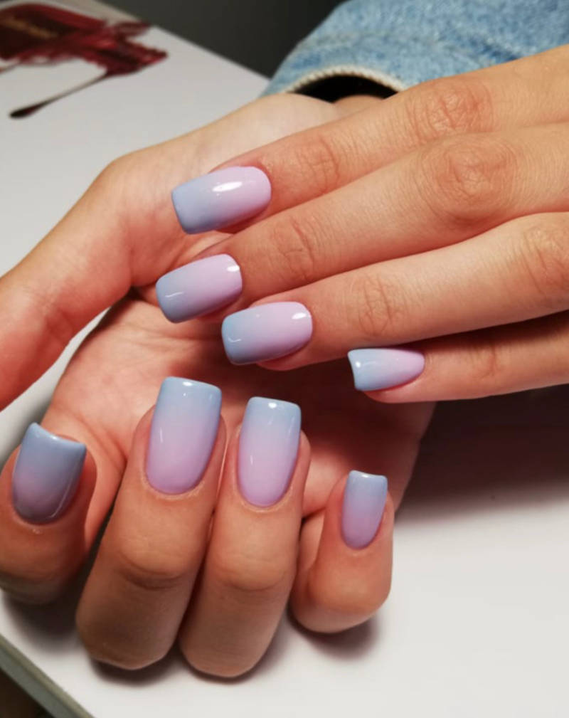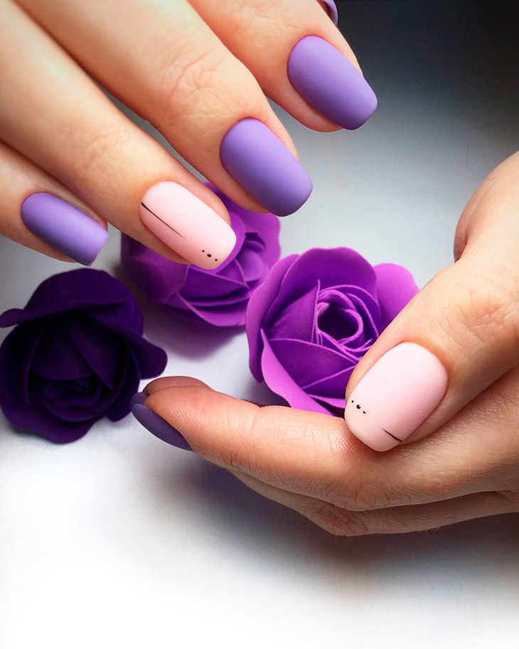Ярко-красный и голубой. Сочетание этих цветов дает красивый фиолетовый оттенок. Это самый темный цвет во всей палитре. Фиолетовый нюдовый маникюр – лучшее решение для девушек, которые хотят испытать новое настроения и вдохновения.