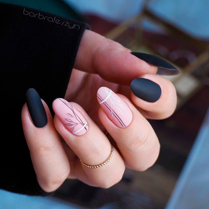Нюдовый черный маникюр – отличное решение для девушек, которые хотят создать классический лук. Дизайн выглядит женственно и просто, делает ногти красивыми и лаконичными. Нейл-арт уникален и отлично подойдет для работы в офисе, отпуска и праздников.