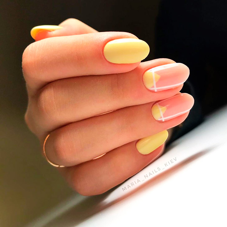 Кремовый нюдовый дизан выглядит чистым и красивым, чего достаточно для хорошей формы. Маникюр подходит как для обычного дня, так и для особых случаев. Стильные варианты цветов от теплого бежевого до розового и желтого. Крем – популярный цвет в монохромном декоре.