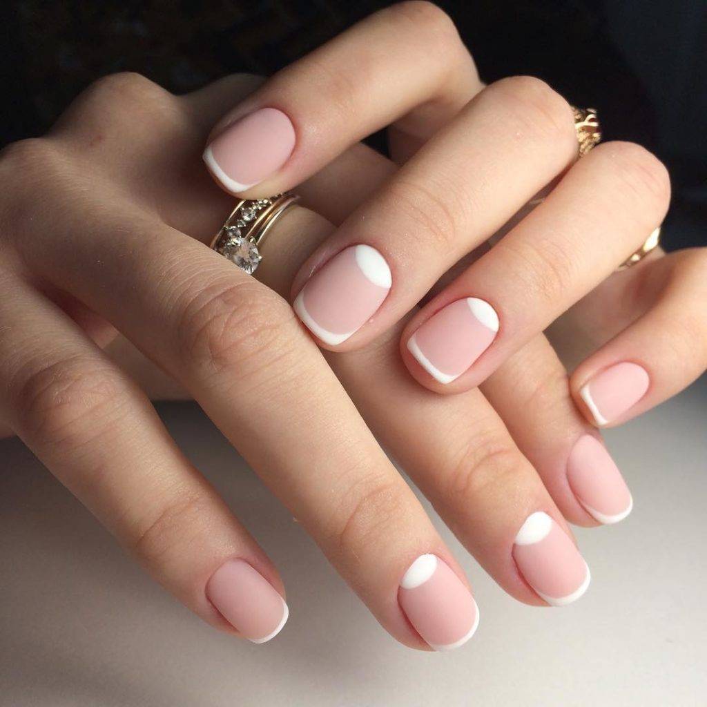 Белые нюдовые ногти смотрятся очень интересно, хотя сочетаются обычные цвета. Маникюр подходит не только для делового стиля, но и для веселой атмосферы. Молочно-белые нюды являются классикой в мире моды.