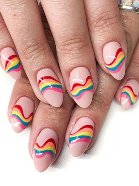 Радуга действительно может доставить столько радости, и если вы хотите добавить цвета в свой следующий маникюр и выбрать что-то, что вызовет улыбку на вашем лице, то это тренд для вас. Вместо того, чтобы придерживаться традиционной формы радуги, вы можете проявить творческий подход, включив ее различными способами. Вы можете сделать это, играя с интервалом и используя завитки и завитки, чтобы каждый ноготь немного отличался. Это создаст еще более захватывающий образ. Можно экспериментировать не только с цветами, но и с различными текстурами. Например, базовое покрытие для матового лака или что-то мерцающее или металлическое. Не стесняйтесь изменять этот параметр, чтобы сделать его своим.