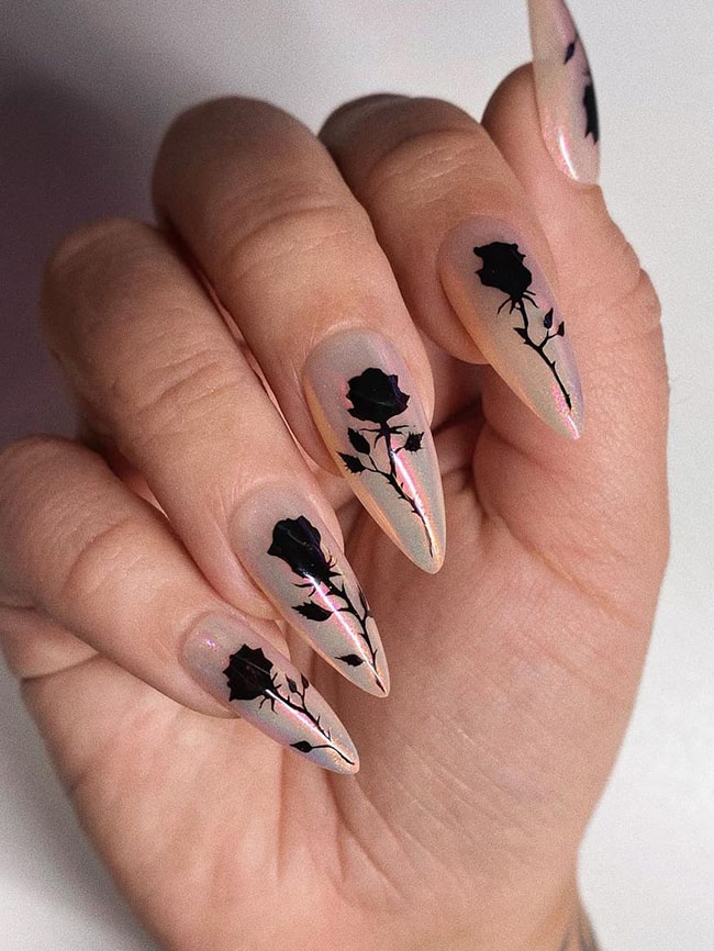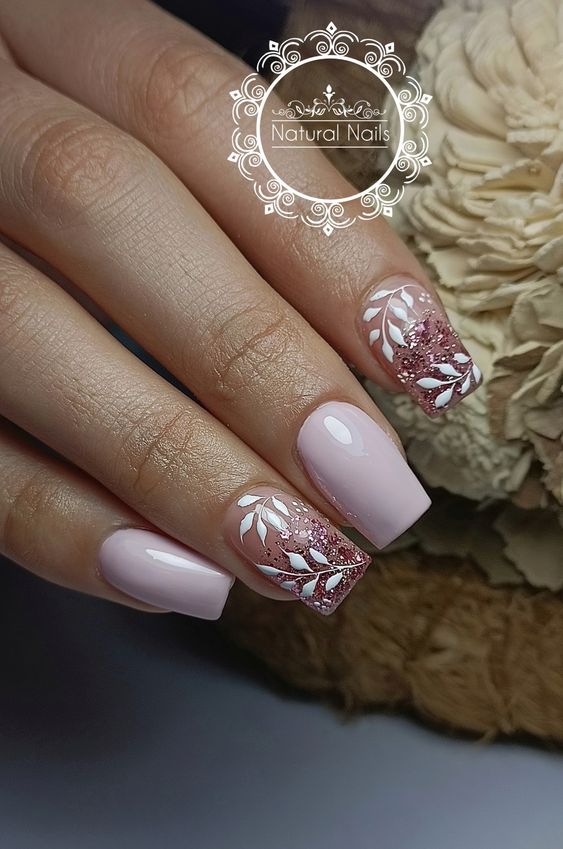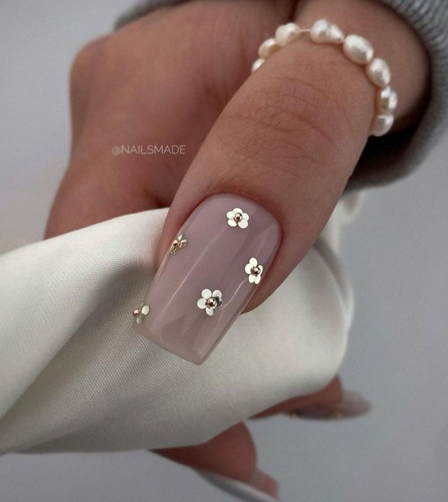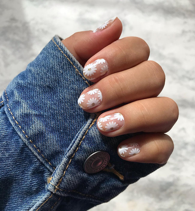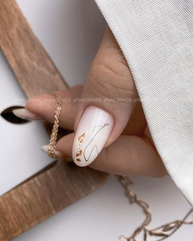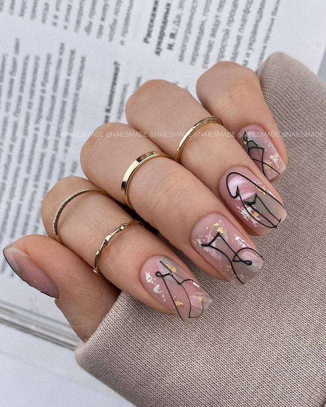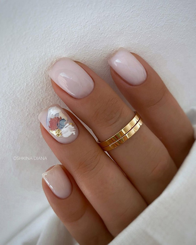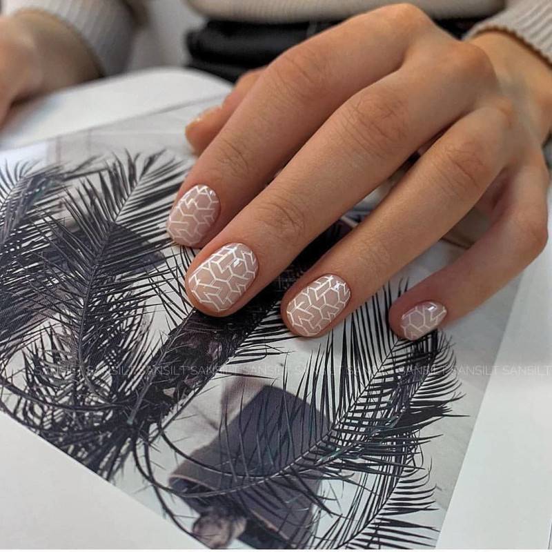 Если дресс-код позволяет, можно выбрать нюдовое покрытие и дополнительно украсить его нежными, полупрозрачными рисуночками.