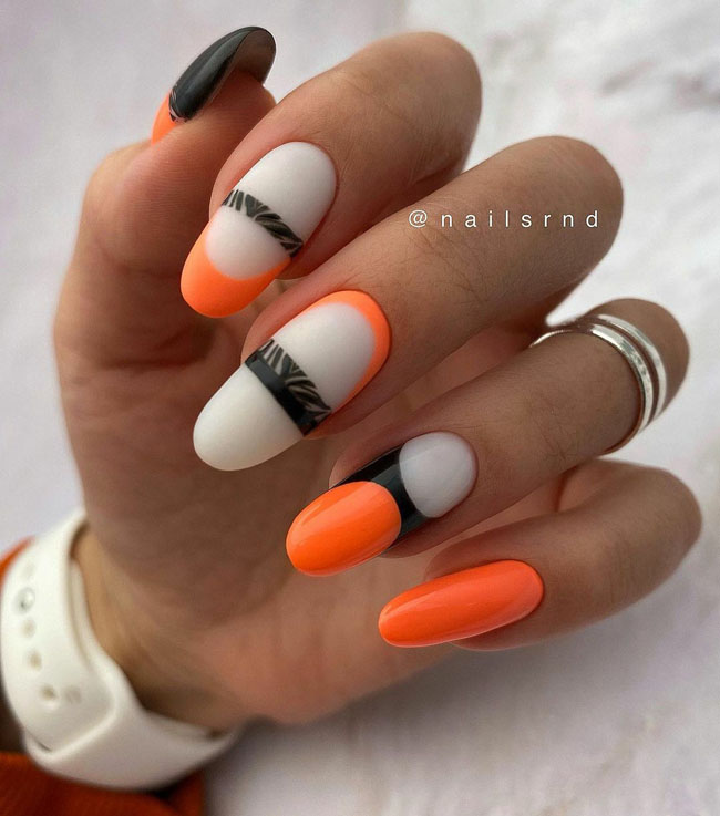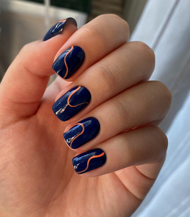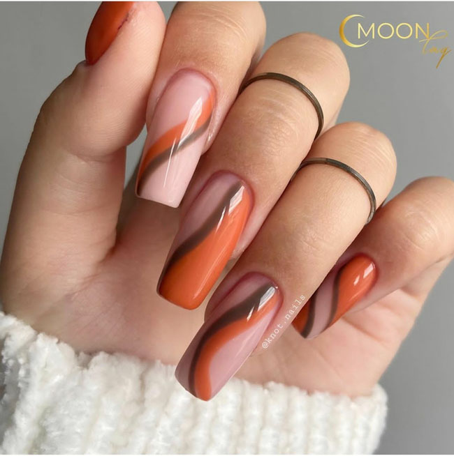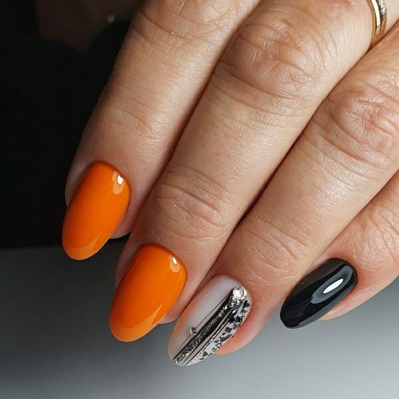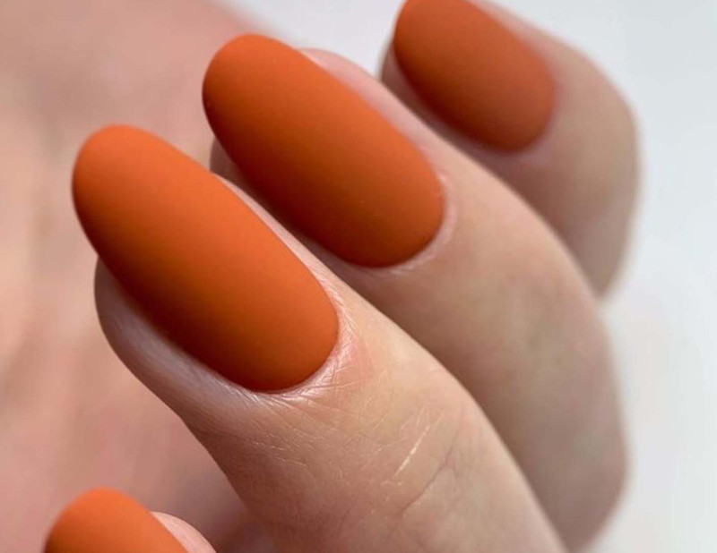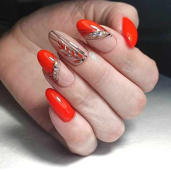 На фото модного маникюра осени можно часто увидеть сочный, яркий, уникальный оранжевый оттенок