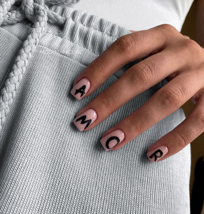 Будь то принт в честь логомании с инициалами любимых брендов или каллиграфическая деталь любого размера, ногти с буквами станут маникюром осени, который обязательно стоит попробовать. У вас есть возможность выбрать фон, курсивные буквы или более чистый шрифт с забавными фразами.