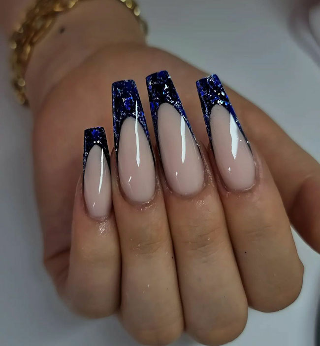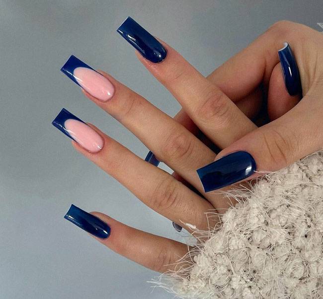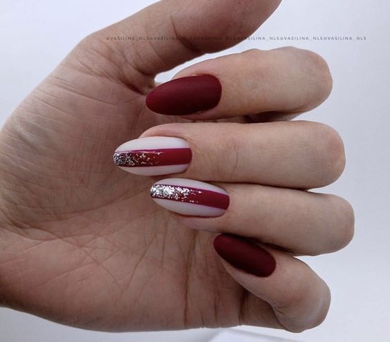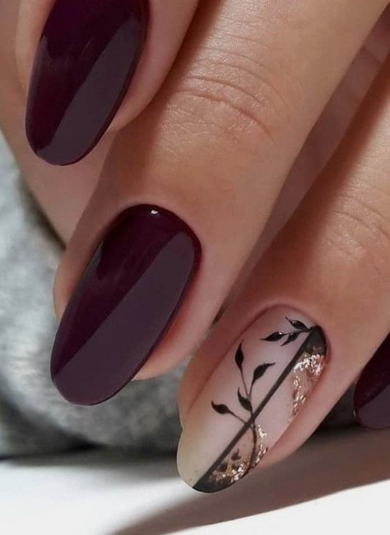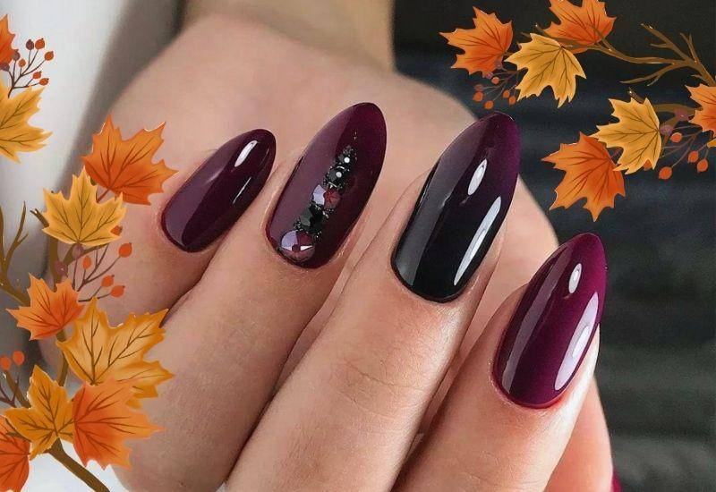 Осенью 2023 года маникюр можно дополнить поролоновым дизайном ногтей в лучших цветах сезона: бордовом, синем, черном и фиолетовом.