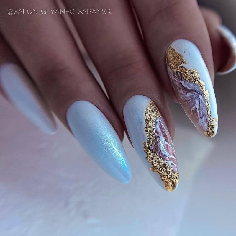Форма-миндаль – не новинка в мире нейл-моды, зато остаётся самой популярной из-за нежности и женственности.