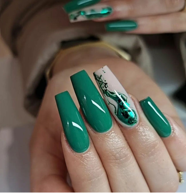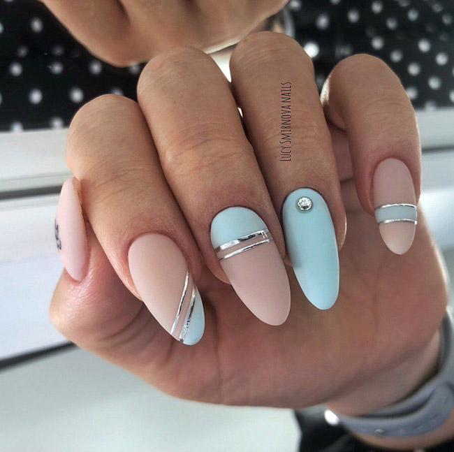 Актуальным в этом сезоне остается по-прежнему и матовое покрытие. Стилисты рекомендуют использовать его именно при создании маникюра на длинных ногтях.
