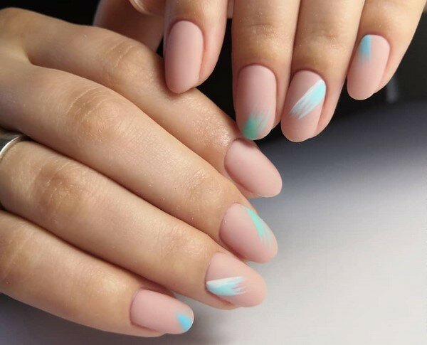 Лучший вариант оформления осенью – пастельные, светлые тона или прозрачный лак (маникюр без маникюра). Декор – простая графика, абстракция, паутинка.