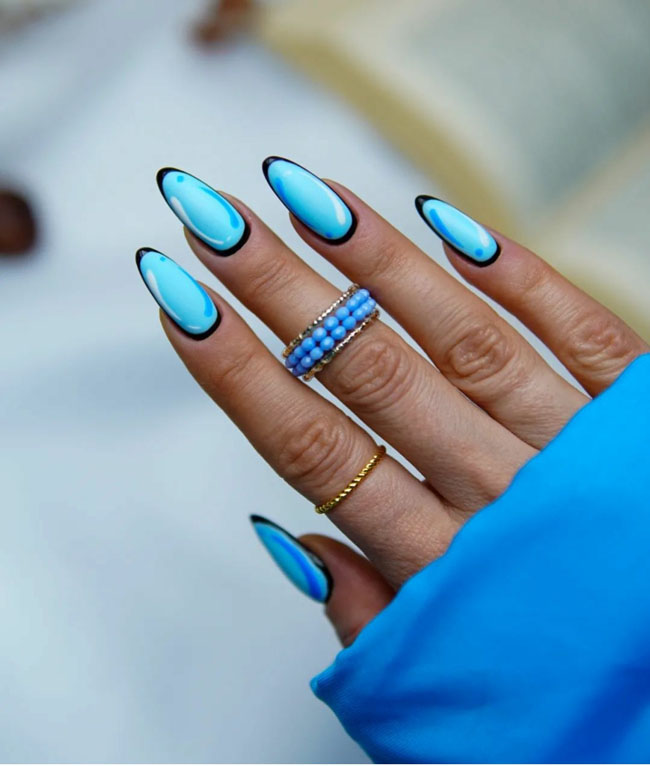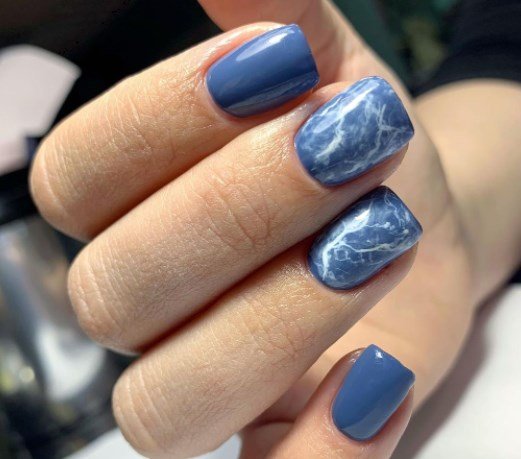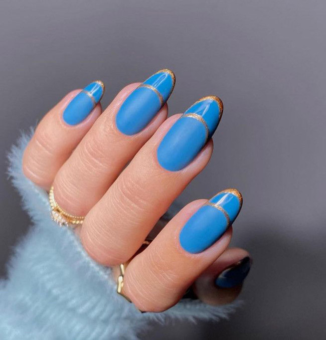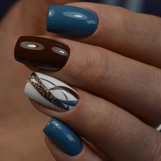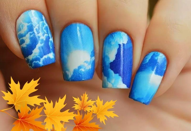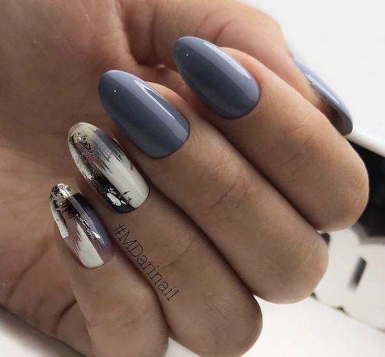 Хит осеннего сезона в маникюрных оттенках — приглушенный голубой, нежный оттенок чистого горного озера. Глубокий оттенок синего холодного лака в сочетании с металлом будут прекрасно смотреться на осеннем маникюре. Оттенки черных, серых и нюдовых лаков также популярны в осеннем сезоне 2023.