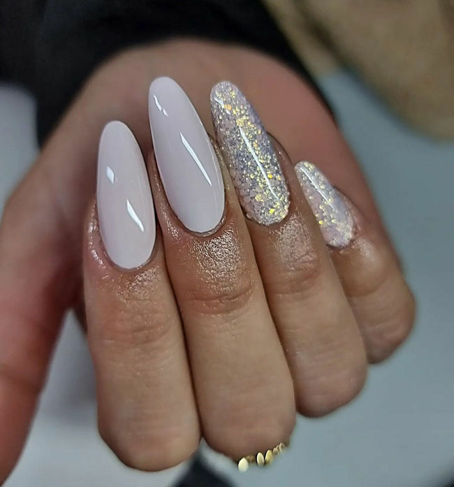 Глиттер — самый популярный вид украшения ногтей не один сезон подряд. Если говорить о трендах осеннего маникюра с пайетками 2023, отдавайте предпочтение серебряным и золотым пайеткам, выбирайте теплые или прохладные пайетки на основе лаковой основы. Цветные пайетки также хорошо смотрятся в маникюре на коротких и длинных ногтях, они могут быть в тон с лаком или на контрасте.