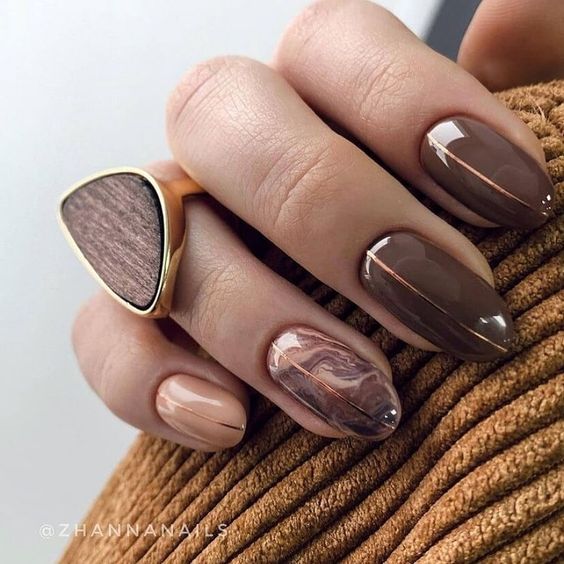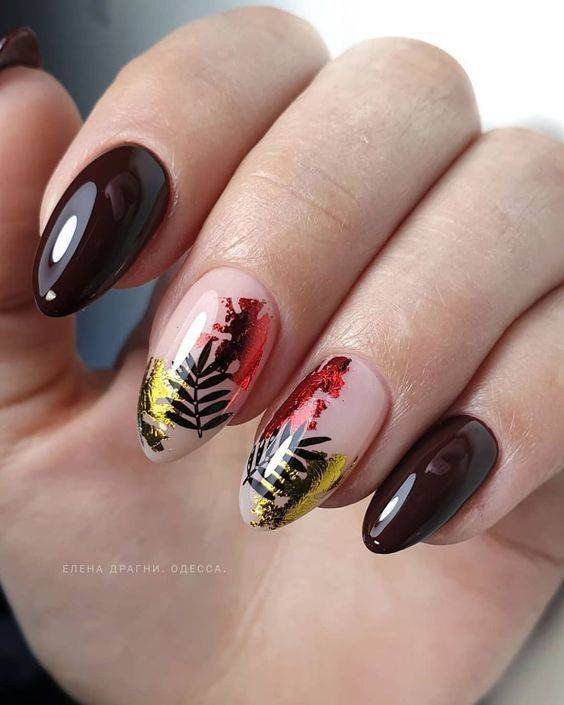 Как красиво смотрятся разные рисунки на ногтях в любимых осенних тонах сезона 2023.