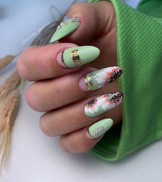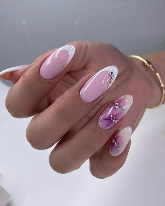 Овальная форма ногтей практична, их нелегко сломать. Овал идеально подходит для женщин, которые предпочитают низкие затраты на обслуживание. Если у вас слабые ногти, вы можете сохранить их красивыми с помощью овальной формы. С цветами и блестками они действительно могут выглядеть великолепно!