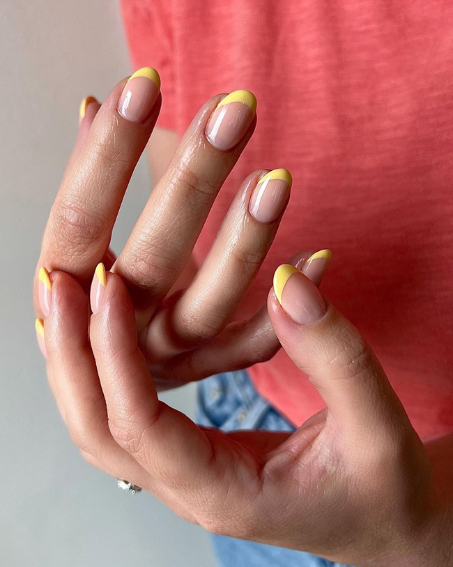Французский маникюр снова входит в модные тенденции. Вместо привычного варианта лучше использовать перевернутый вариант, с прокрашенной лункой, либо же так называемый «лунный». Также в 2023-2024 году цветной френч закрепился среди модных идей, поэтому осенью можно смело прокрашивать кончик ногтя в оранжевый, коричневый, желтый и другие яркие цвета.