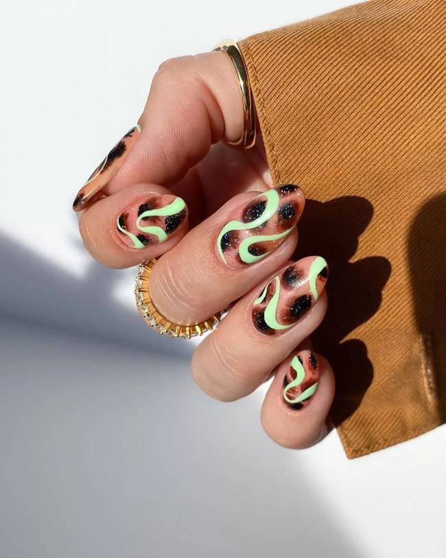 Неудивительно, что ногти в стиле абстрактного искусства по-прежнему остаются в моде этой осенью. Когда дело доходит до осеннего дизайна ногтей, абстрактные ногти могут варьироваться от простых двухцветных дизайнов до настоящих произведений искусства.