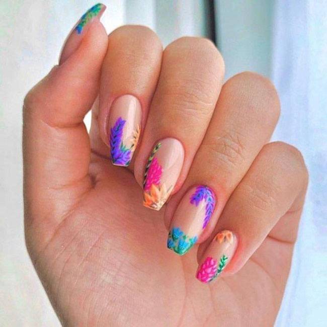 Хотя это не новый вид дизайна, это один из дизайнов, который продолжает привлекать наибольшее внимание, особенно в сезоны, когда требуются более теплые и яркие предложения. Это приложение, которому удается адаптироваться ко всем типам нейл-арта