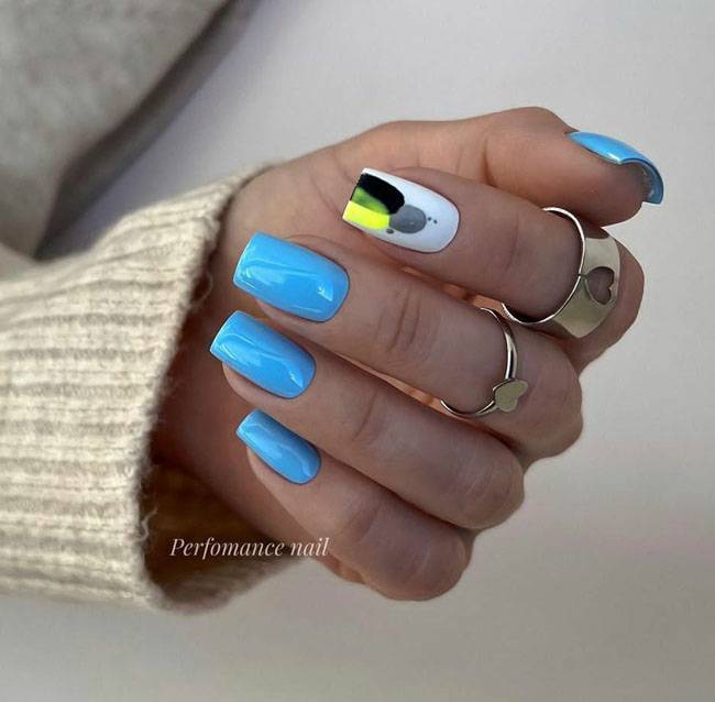 Для скромниц можно делать акцентирование на 1 или 2 пальчиках, оставив остальные в пастельной цветовой гамме. Для смелых можно сделать единый рисунок из декора на всех пальчиках.