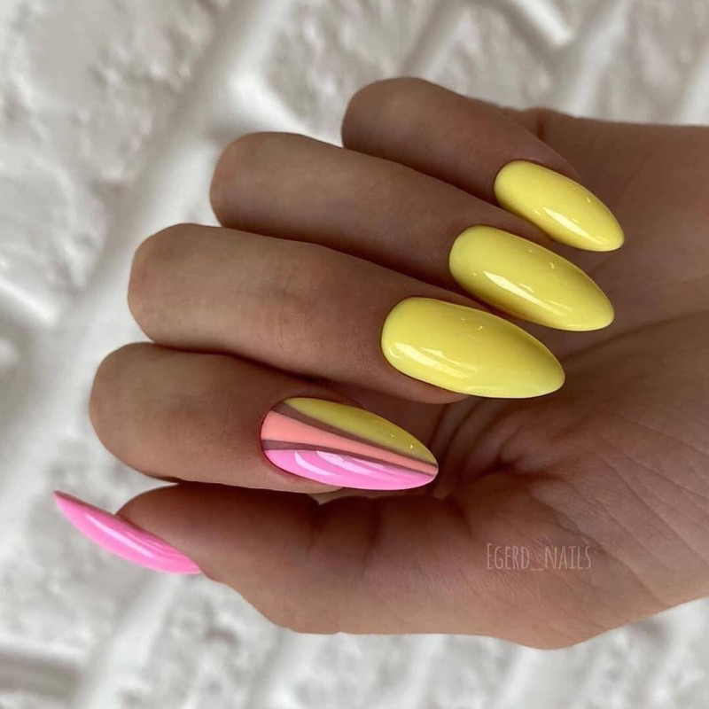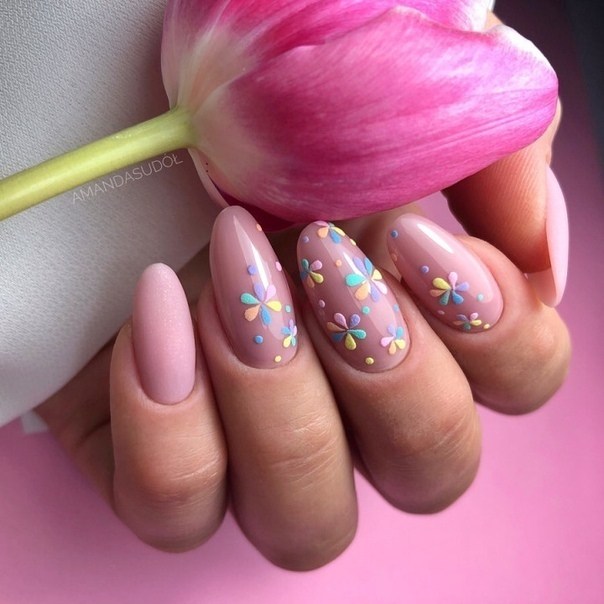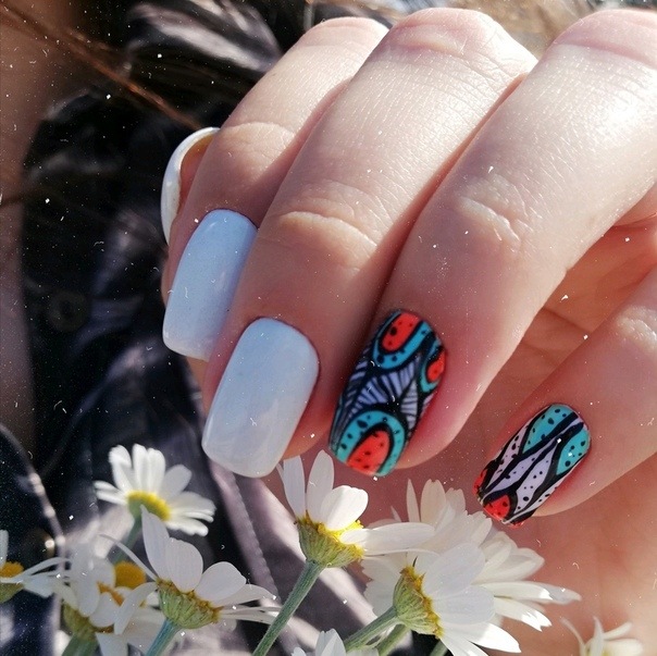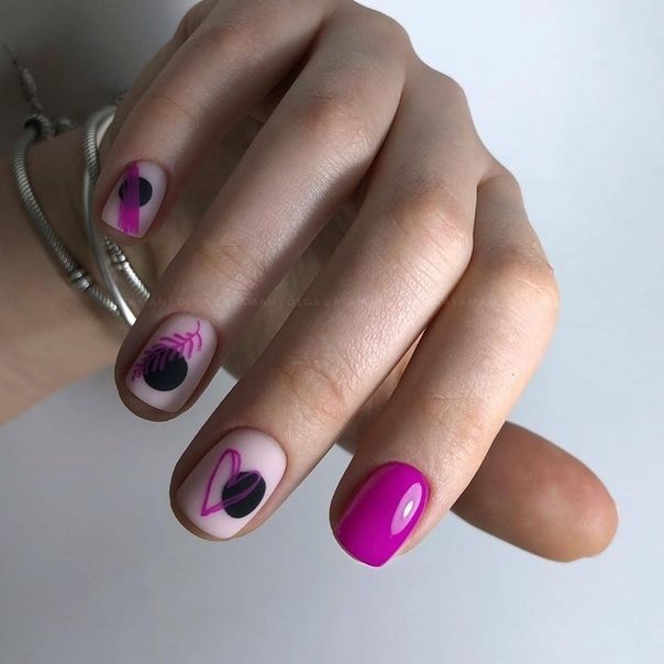 Если же цвета похожи друг на друга, то лучше, если они будут яркими. Идеально подойдут для такого маникюра насыщенный розовый или коралловый.