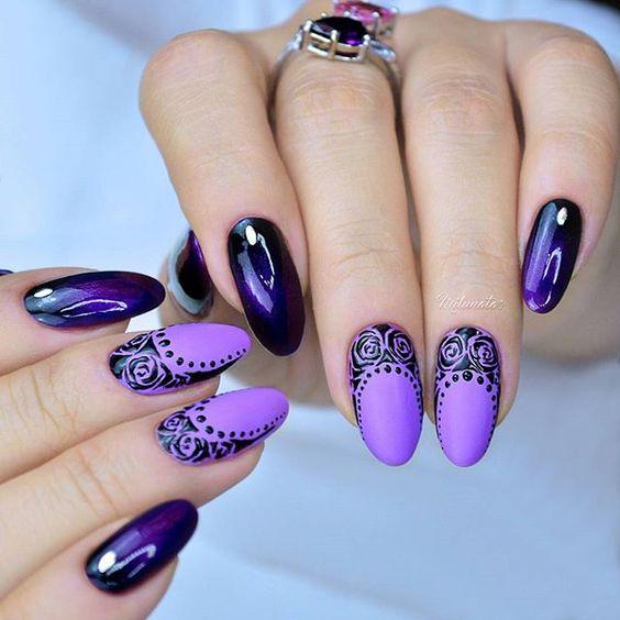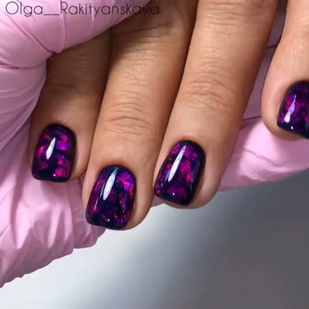 Уже несколько сезонов подряд фиолетовый маникюр на пике популярности в осенне-зимний период. Красивый фиолетовый маникюр сочетается со многими техниками и видами дизайна: различными рисунками, пайетками, камнями, фольгой, камифубуки, платками.